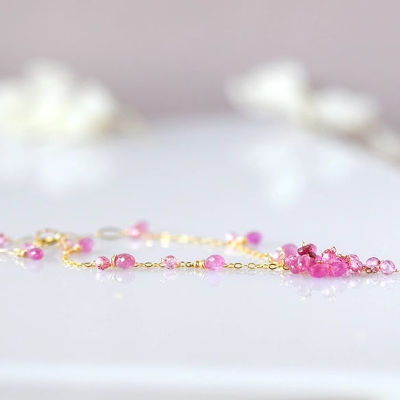 桜 ― Pink Sapphire & Pink Topaz ブレスレット14kgf