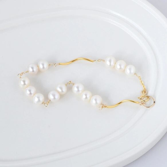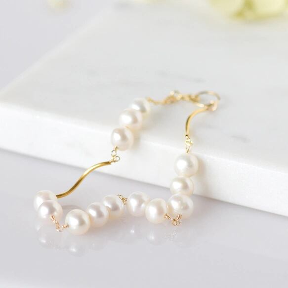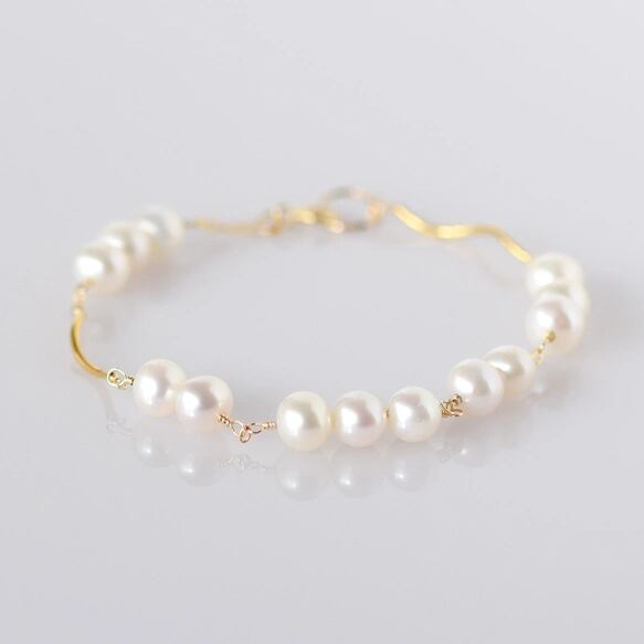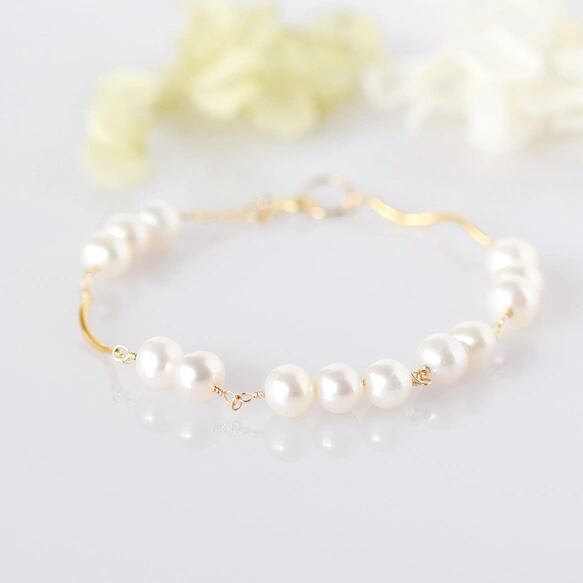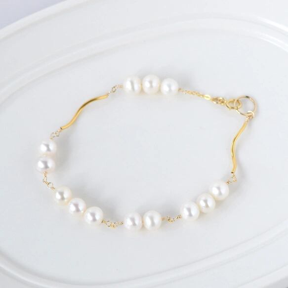 パールブレスレット ― 淡水パール×Sライン 14KGF