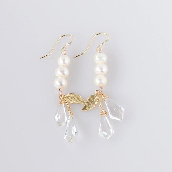 〜〜パールとクリスタルが揺れる瑞々しいピアス。〜〜