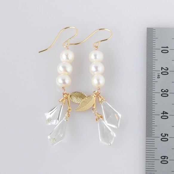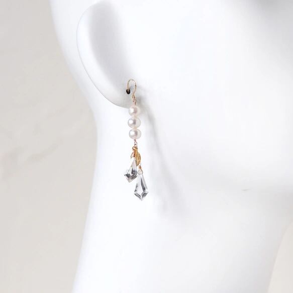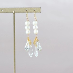 淡水パール × クリスタル ロングピアス 14kgf