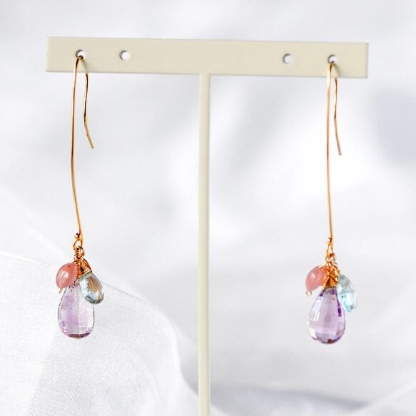優しく揺れる大人の天然石ロングピアス。〜〜