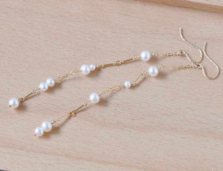 美しいホワイトパールにラインバー、デザインチェーンを軽やかに繋いだシンプルな