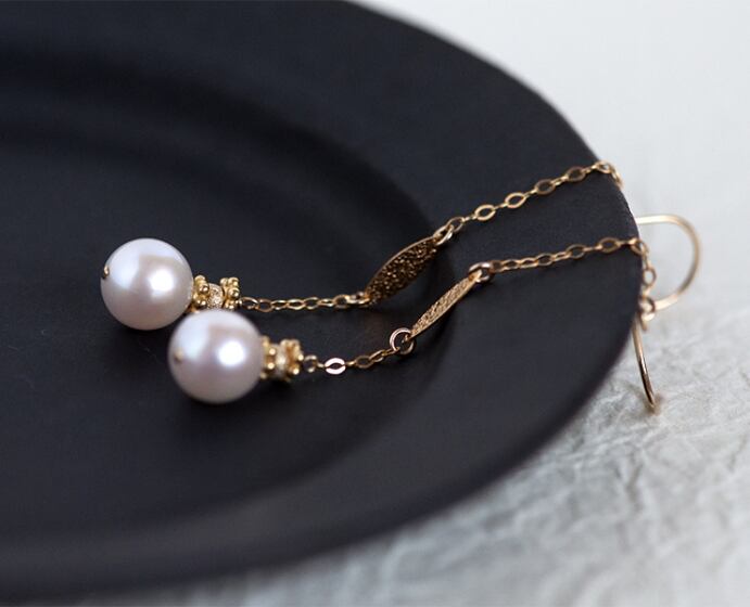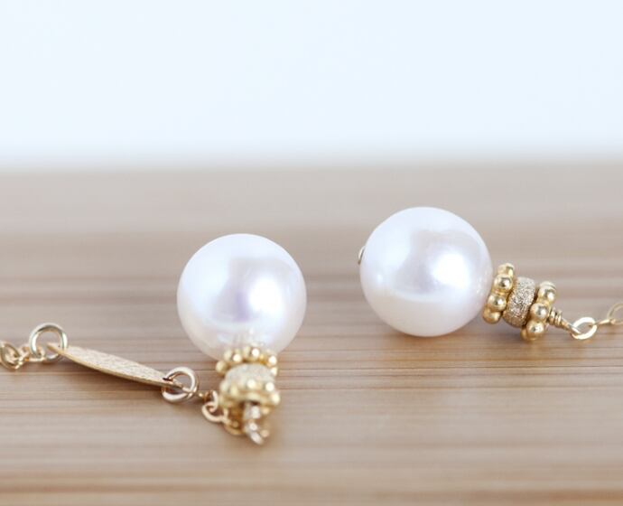 凛とした端正なフォルム、きめ細やかな照りのアコヤ真珠