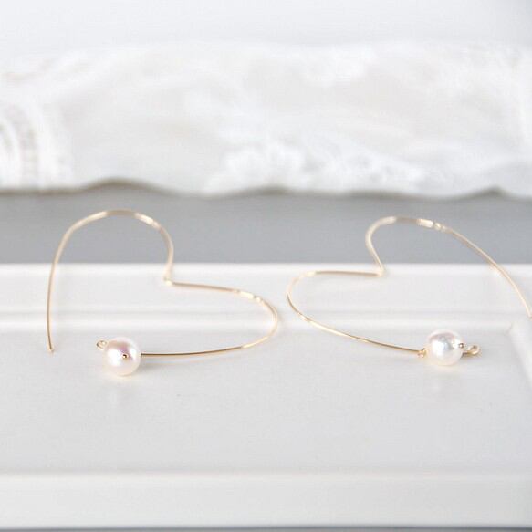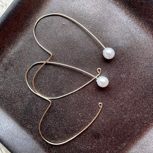 14kgf/アコヤバロック真珠xハートシェイプオープンフープピアス