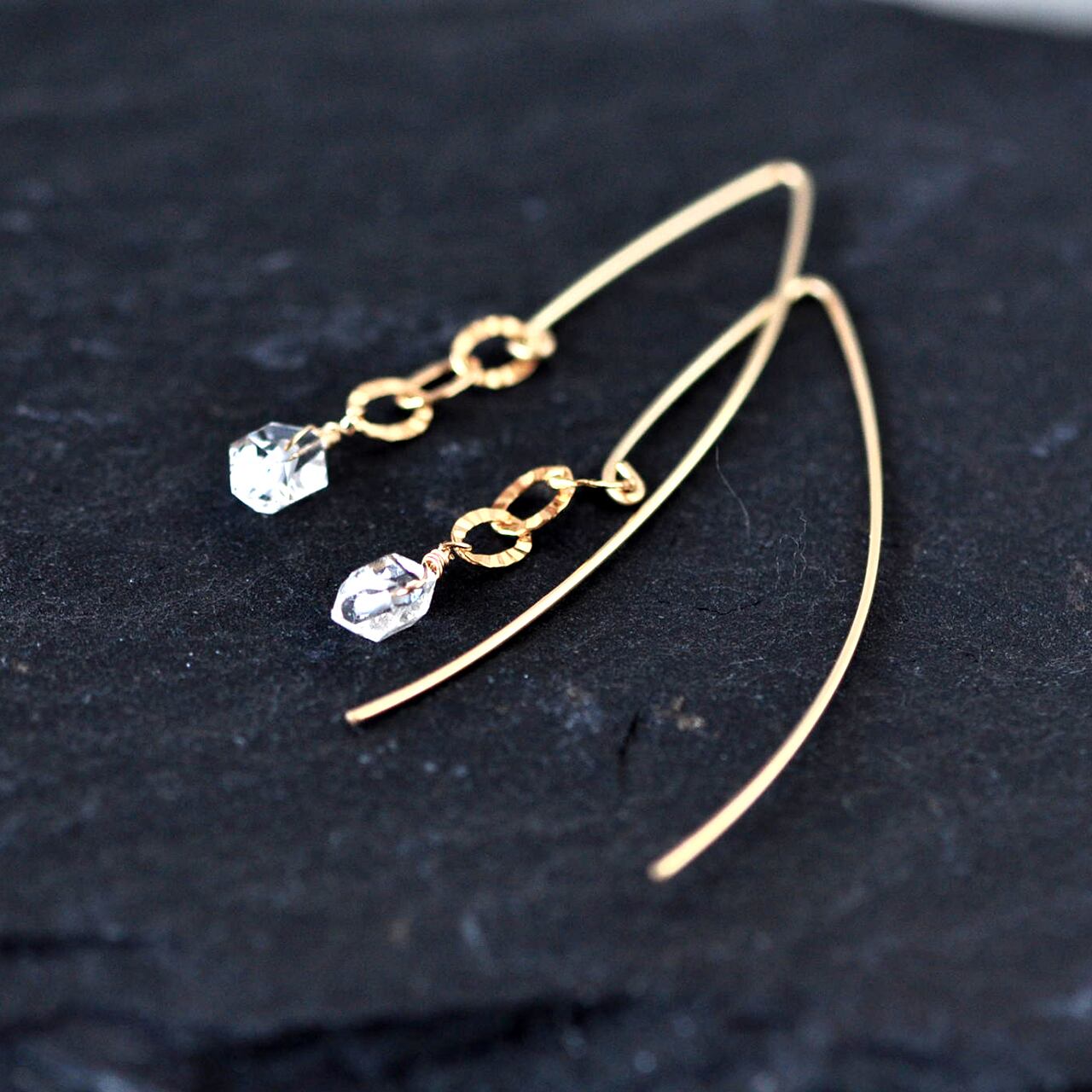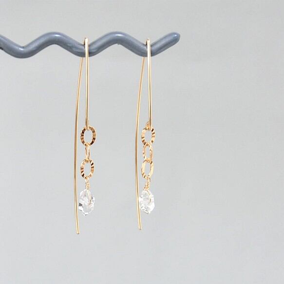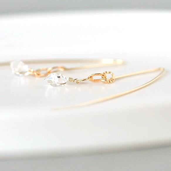 14kgf/ハーキマーダイヤモンドロングフックピアス