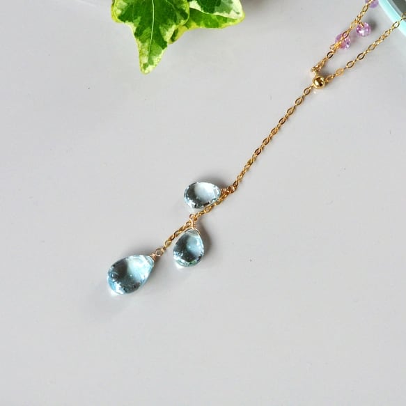 14kgf/2WAYアクアマリンxピンクサファイアネックレス