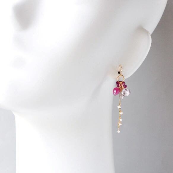14kgf/Autumn Flower Garden 蕾ルビーxアコヤバロック真珠ピアス