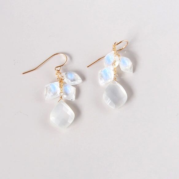 14kgf/ホワイトムーンストーンxレインボームーンストーンピアス