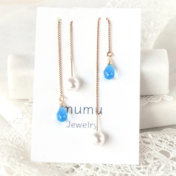 14kgf/スイスブルートパーズアメリカンチェーンピアス 貝パールキャッチ付き