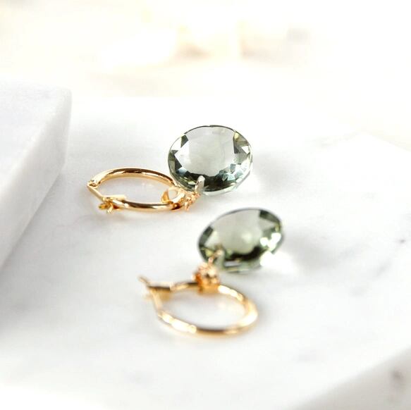 2月の誕生石、グリーンアメジスト(プラシオライト)を使用した、上品で洗練されたフープチューブピアスです。